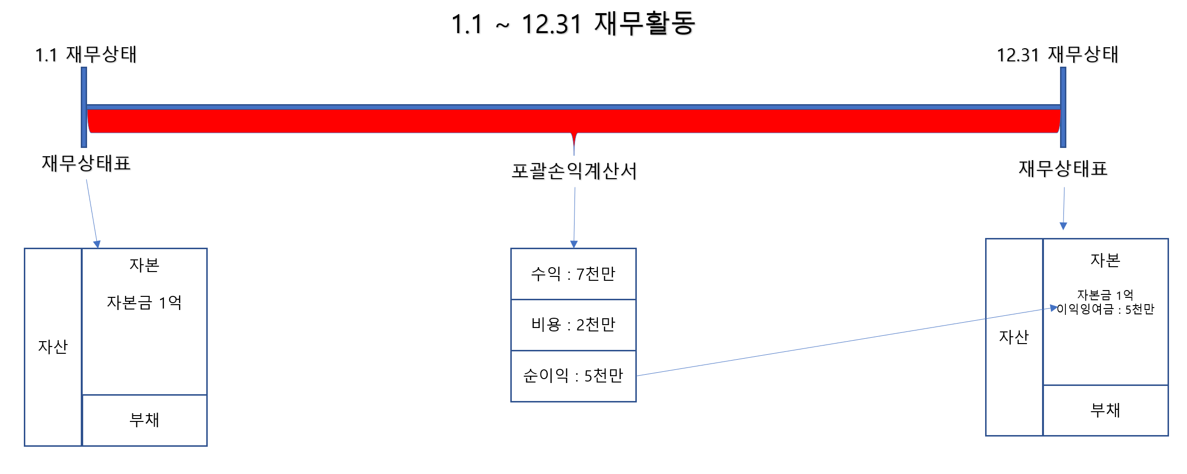 자본은 자본금과 이익잉여금을 더한 것이다.(물론 자본잉여금 등등 여러가지가 더 있다.)