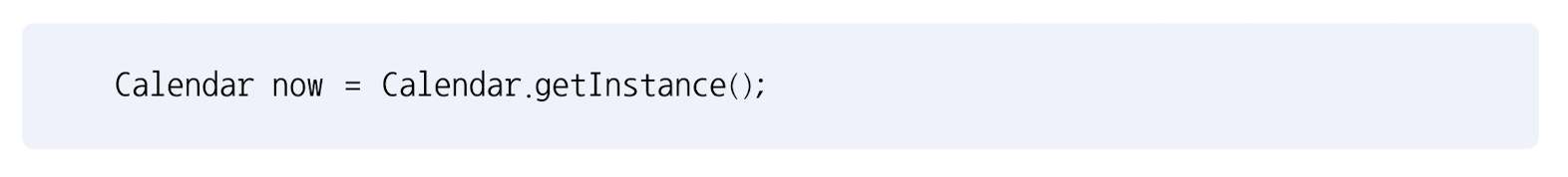 - Calendar 클래스의 정적 메소드인 getInstance() 메소드를 이용하면 현재 운영체제에 설정되어 있는 시간대를 기준으로 한 Calendar 하위 객체를 얻을 수 있다.