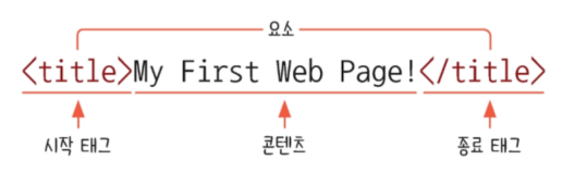 시작 태그(open tag)와 종료 태그(close tag), 콘텐츠(content)를 합쳐서 요소(element)라고 한다.
