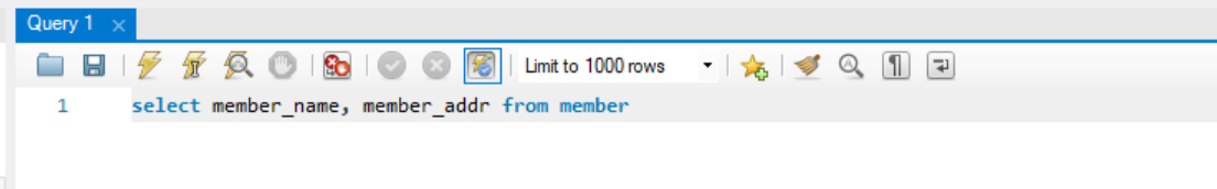 member 테이블에서 이름과 주소만 출력하려면 아래와 같이 입력하면 된다.