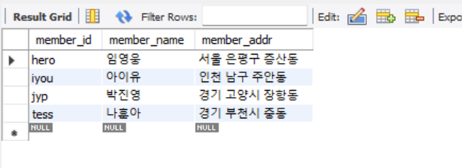 member 테이블의 모든 행이 출력된다.