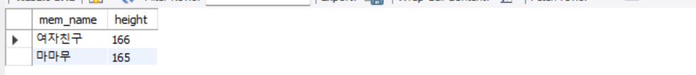 아래의 코드는 키가 164 이상인 그룹을 내림차순으로 정렬하는 코드이다.