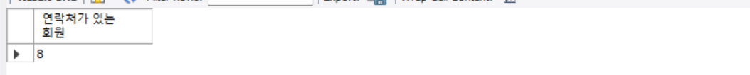 연락처가 있는 회원만 카운트하려면 전화번호의 열 이름을 지정하면 된다. 그러면 NULL 값인 항목은 제외하고 카운트하여 결국 연락처가 있는 회원의 인원만 나온다.
