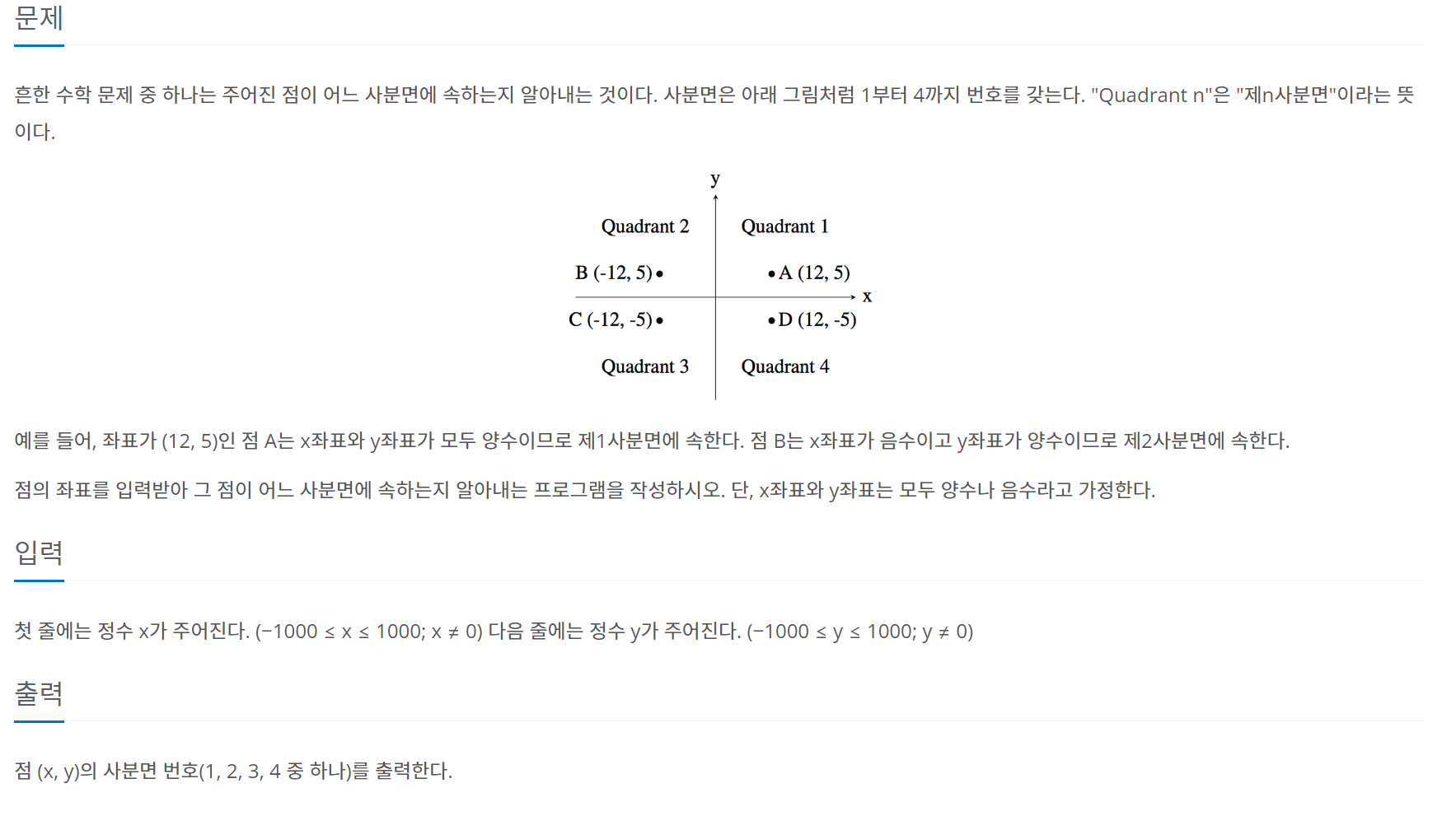 [C++] 백준 2단계 - 14681번 문제자료구조 & 알고리즘/BOJ2023. 3. 19. 03:16