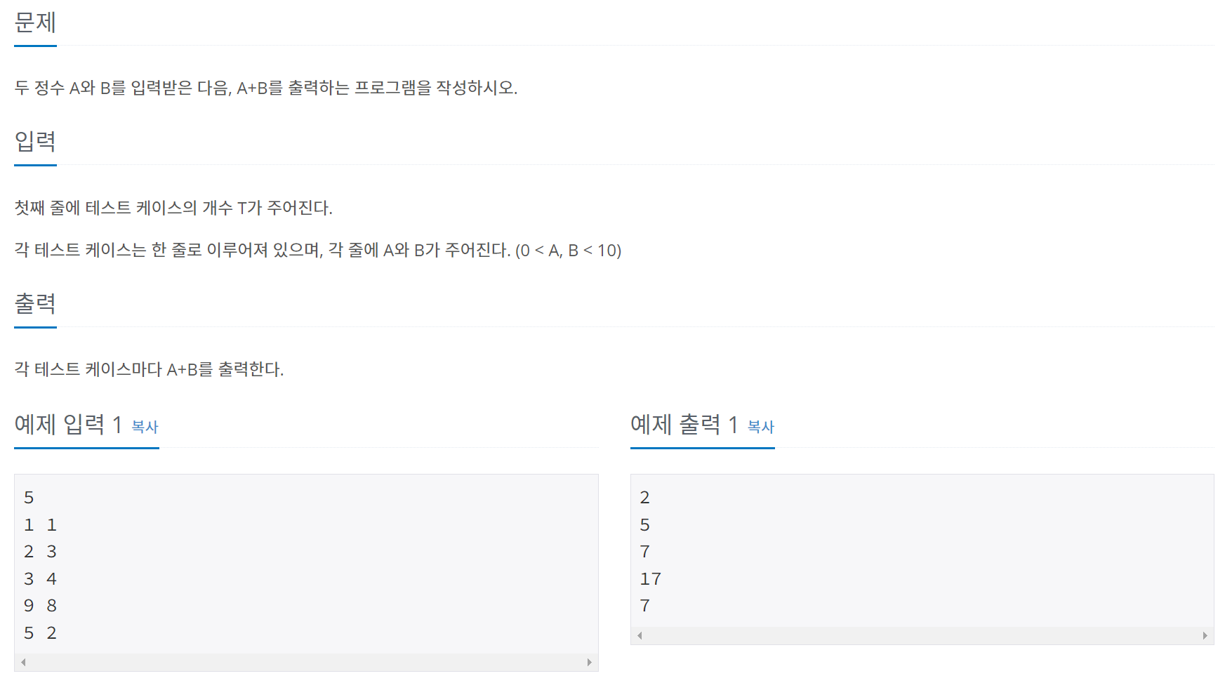 [C++] 백준 3단계 - 10950번 문제자료구조 & 알고리즘/BOJ2023. 3. 21. 17:14