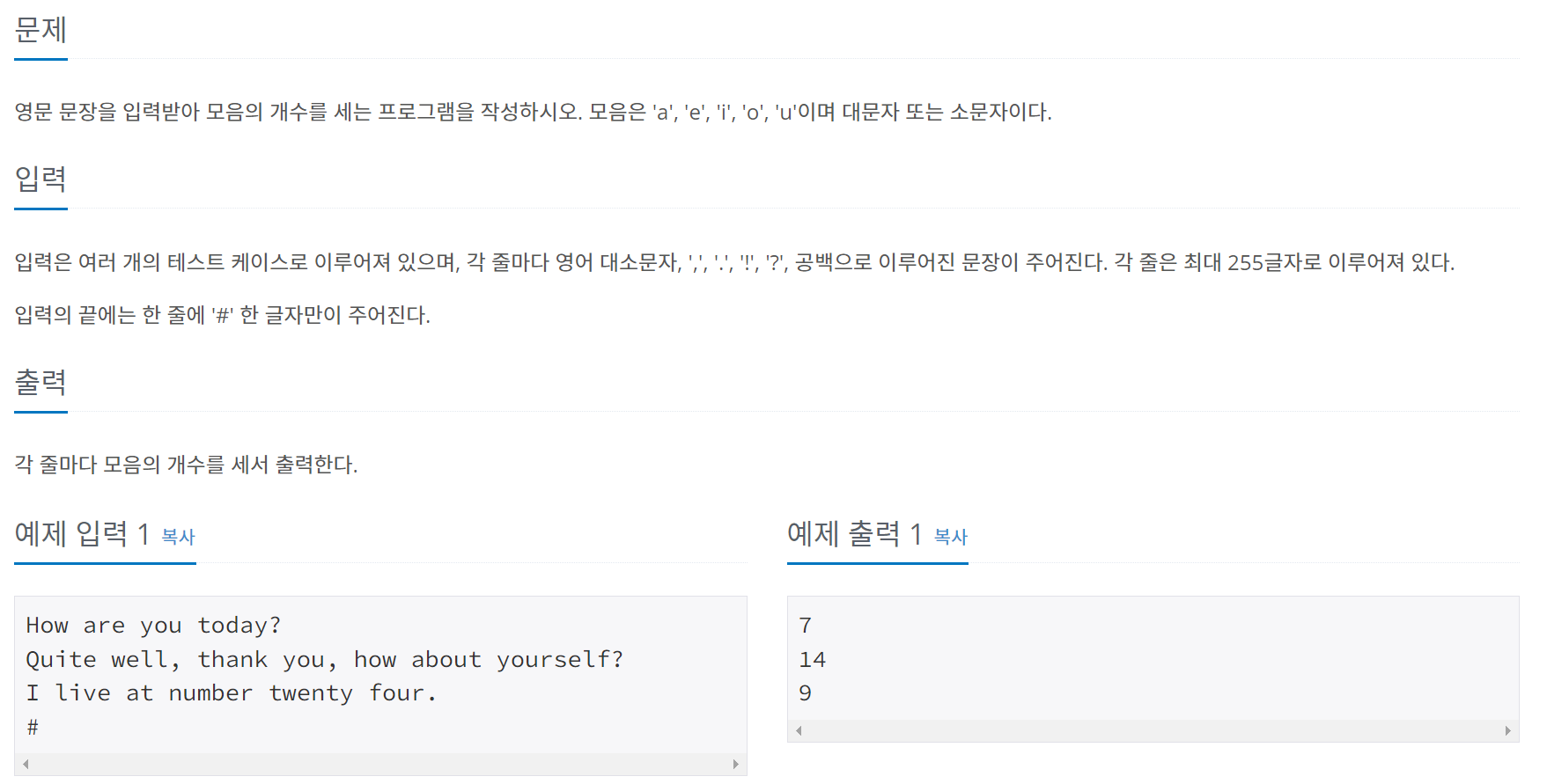 [C++] 백준 - 1264번 문제 (모음의 개수)자료구조 & 알고리즘/BOJ2023. 4. 8. 00:12