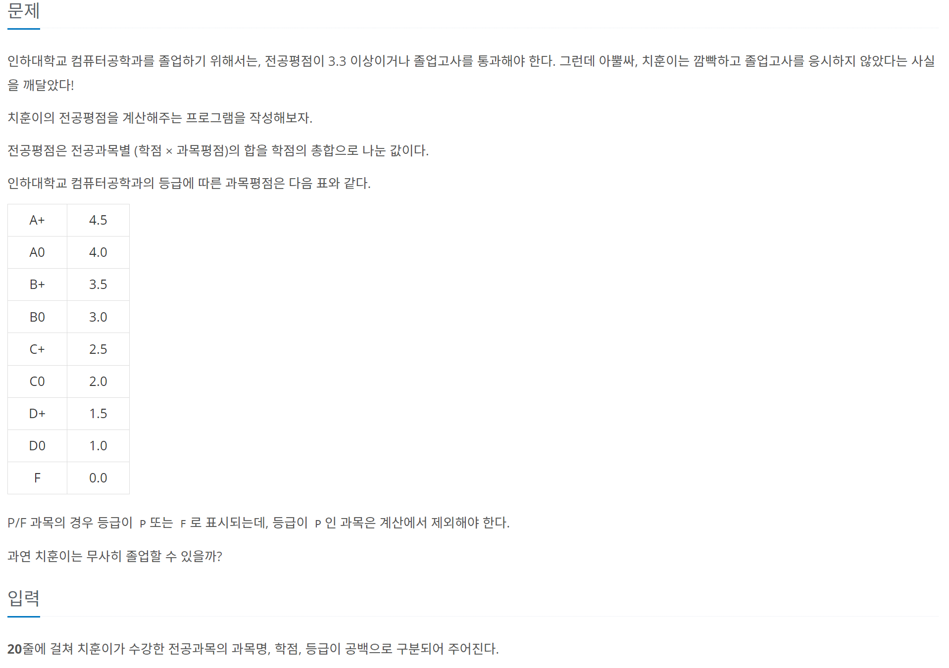 - 과목평점을 string형 변수 input에 받는다.