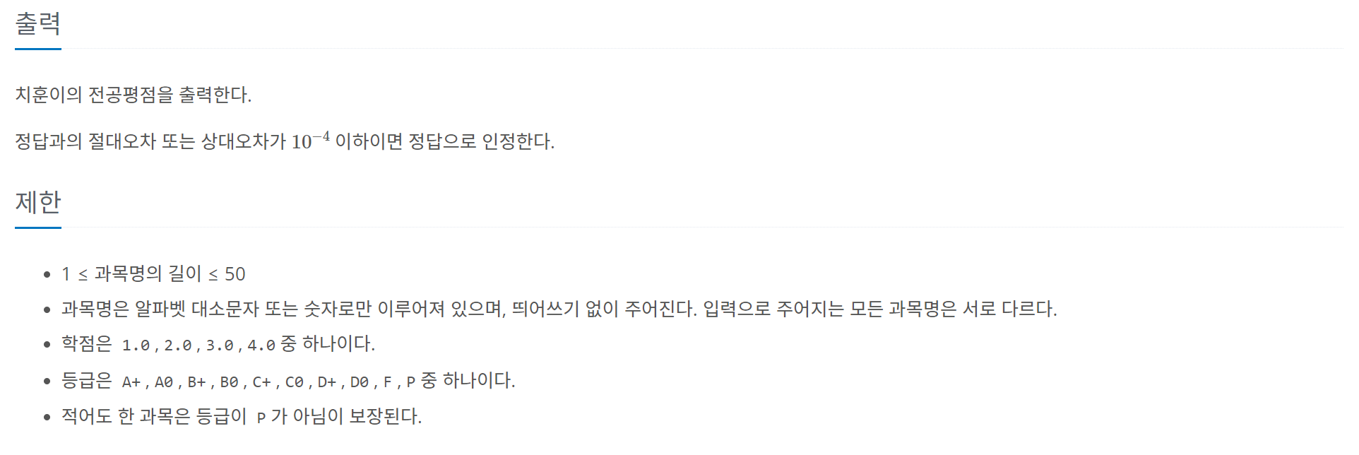 [C++] 백준 6단계 - 25206번 문제 (너의 평점은)자료구조 & 알고리즘/BOJ2023. 4. 17. 15:38