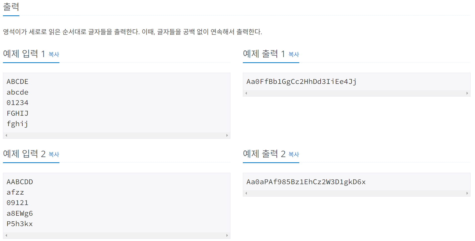 [C++] 백준 7단계 - 10798번 문제 (세로읽기)자료구조 & 알고리즘/BOJ2023. 4. 18. 18:16
