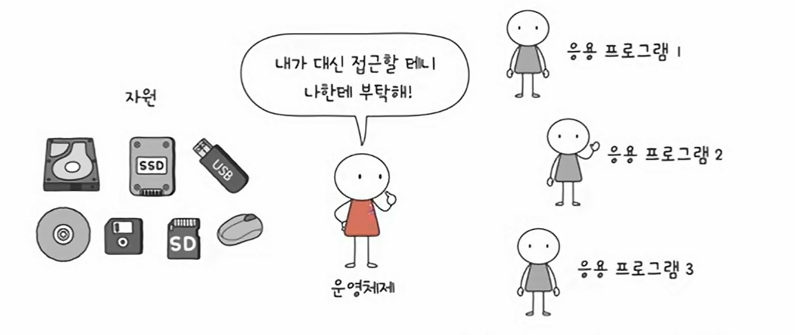 따라서 응용 프로그램이 자원에 접근하기 위해서는 운영체제에 도움을 요청해야 한다.