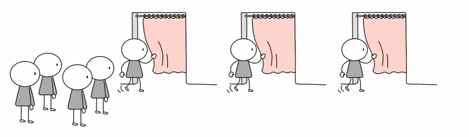 임계 구역 문제와 이를 해결하기 위한 동기화를 옷 가게에서 탈의실을 이용하는 것에 비유해 보자.