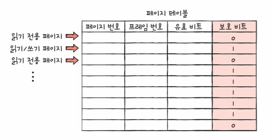 이러한 읽기 전용 페이지에 쓰기 시도를 하면 운영체제가 이를 막아준다.