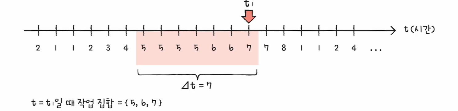 작업 집합을 구하는 방법 작업 집합 : 프로세스가 일정 기간 동안 참조한 페이지 집합