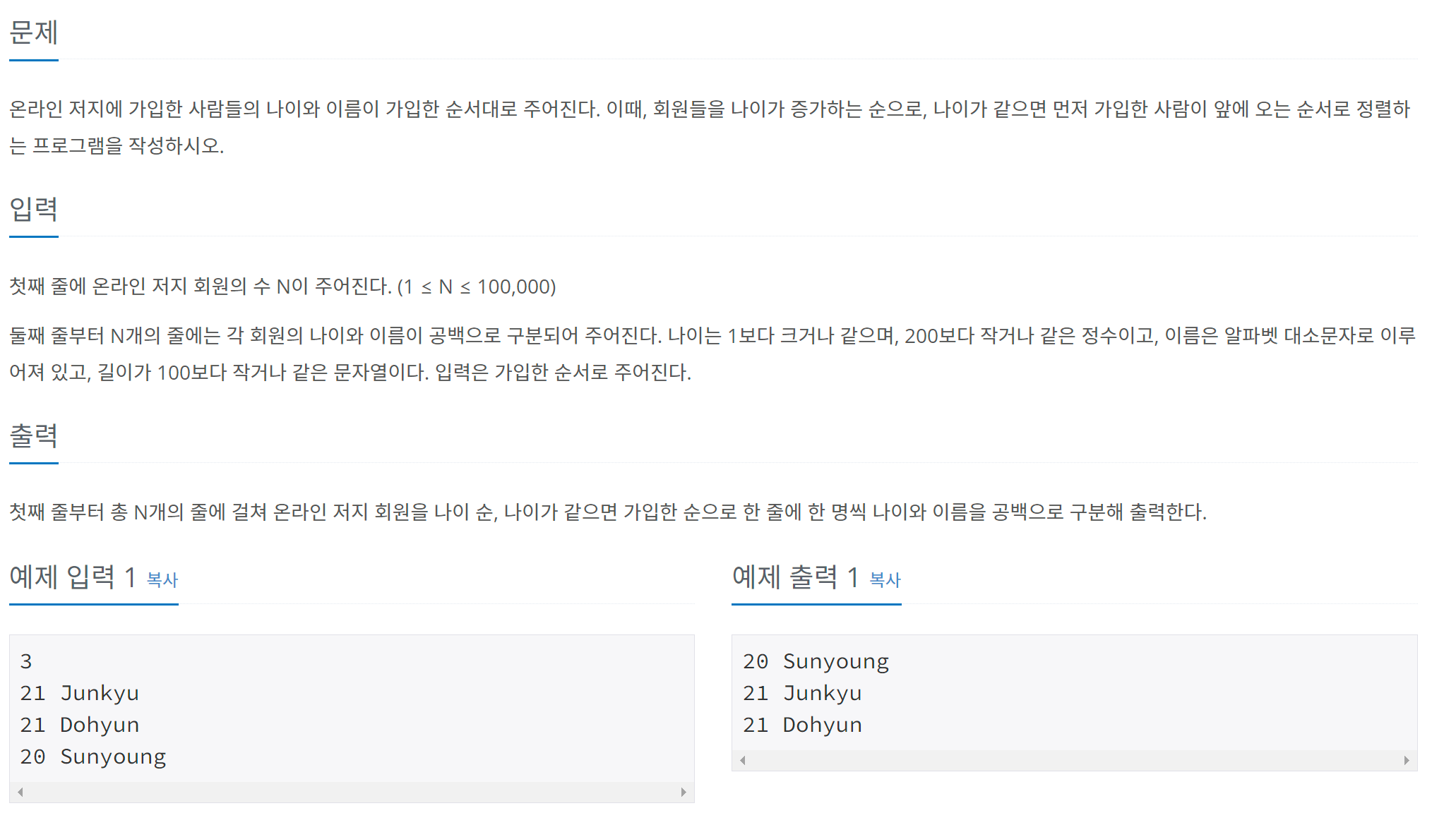 [C++] 백준 13단계 - 10814번 문제 (나이순 정렬)자료구조 & 알고리즘/BOJ2023. 7. 18. 20:36