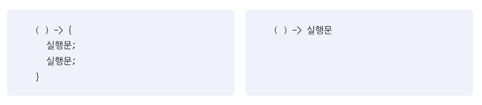 함수형 인터페이스의 추상 메서드에 매개변수가 없을 경우 람다식은 아래와 같이 작성할 수 있다.