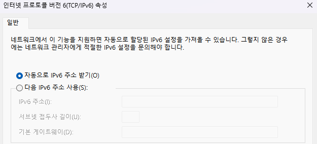 자동으로 IP주소 받기가 설정되어 있다면 Switch또는 Hub가 할당해 주는 IP주소를 사용하는 것이고, 사용자가 직접 설정할 수도 있다.
