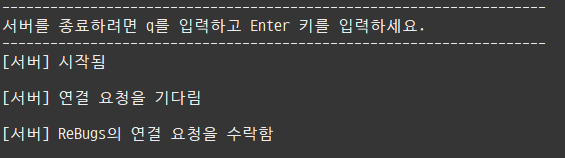 System.out.println("서버를 종료하려면 q를 입력하고 Enter 키를 입력하세요.");