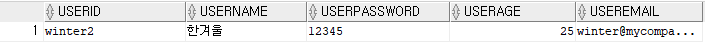 User [userId=winter, userName=한겨울, userPassword=12345, userAge=25, userEmail=winter@mycompany.com]
