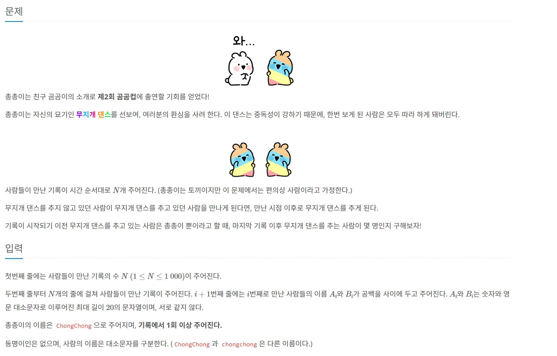 - p1과 p2 둘 중 한 명의 이름이 ChongChong이라면 둘 다 춤을 추게 만든다.