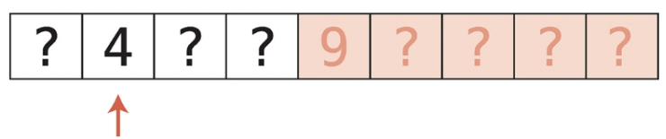 원소 9개를 포함하는 정렬된 배열이 있다고 가정하면, 컴퓨터는 각 셀에 어떤 값이 있는지 바로 알 수 없다.