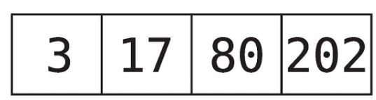 이렇게 3, 17, 50, 202로 정렬된 배열이 있다고 가정할 때,