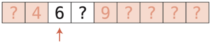원소 9개를 포함하는 정렬된 배열이 있다고 가정하면, 컴퓨터는 각 셀에 어떤 값이 있는지 바로 알 수 없다.