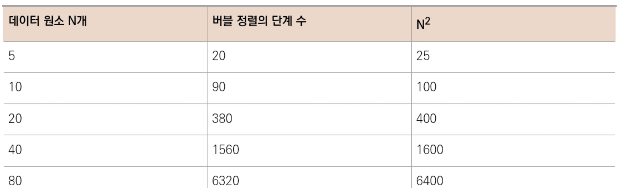 원소가 N개일 때, 단계는 대략 N²인 것을 확인할 수 있다.