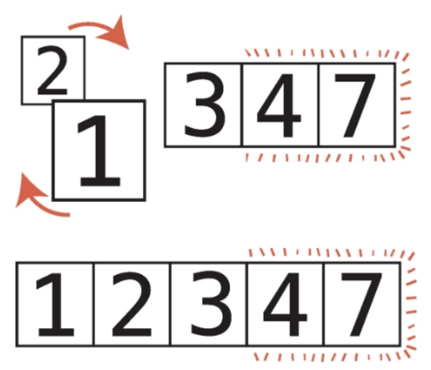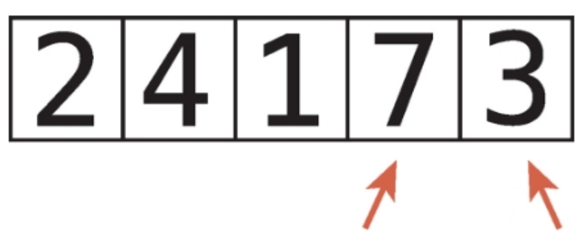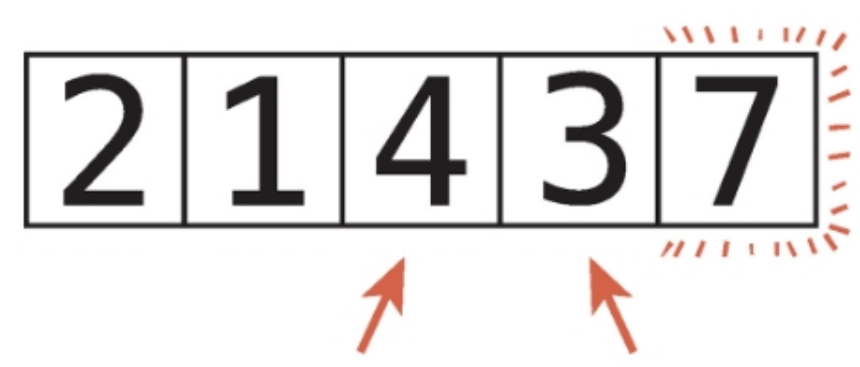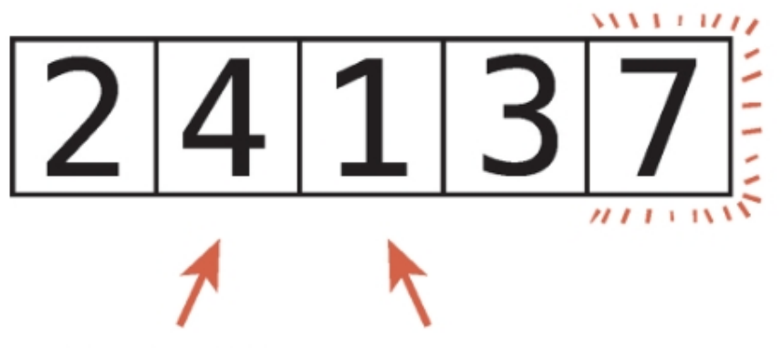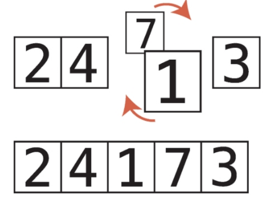 2. 두 항목의 순서가 뒤바뀌어있으면, 두 항목을 교환한다. (순서가 올바르다면 2단계에선 아무것도 하지 않는다.)