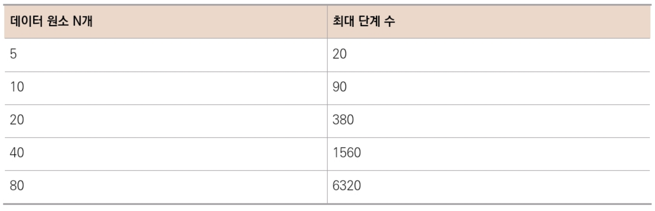 원소가 N개일 때, 단계는 대략 N²인 것을 확인할 수 있다.