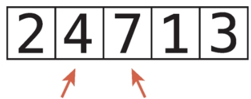 1. 배열 내에서 연속된 두 항목을 가리킨다. 즉, 첫 번째 항목과 두번째 항목을 비교한다.