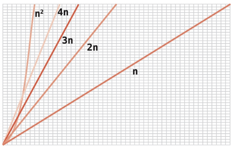 빅 오 표기법은 데이터가 늘어날 때 알고리즘 단계 수가 장기적으로 어떤 궤적을 그리는지가 중요하다. O(N)에 어떤 수를 곱하든 데이터가 커지다 보면 언젠가 결국 O(N²)이 더 느려진다는 사실을 깨달으면 완전히 이해가 간다.