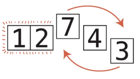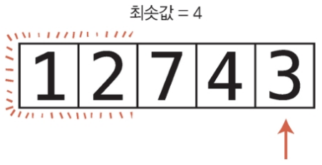 11단계 : 배열의 끝에 도달했으므로 3과 패스스루를 시작했던 값, 즉 7을 교환한다.