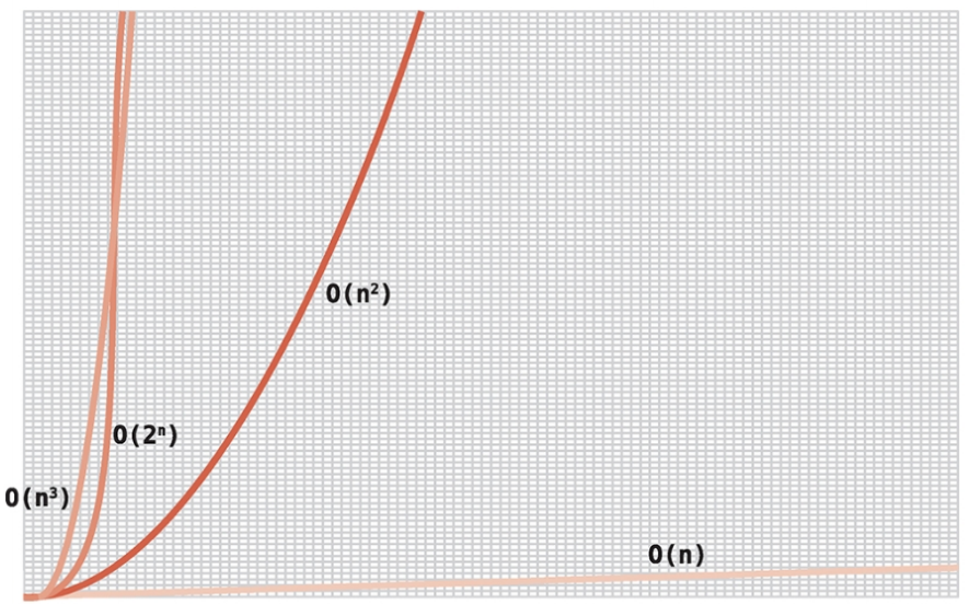 이 알고리즘은 중첩 루프가 총 3개 있으며, 3개 모두 N개의 원소를 순회하니 총 단계는 N x N x N = N³단계가 걸린다.