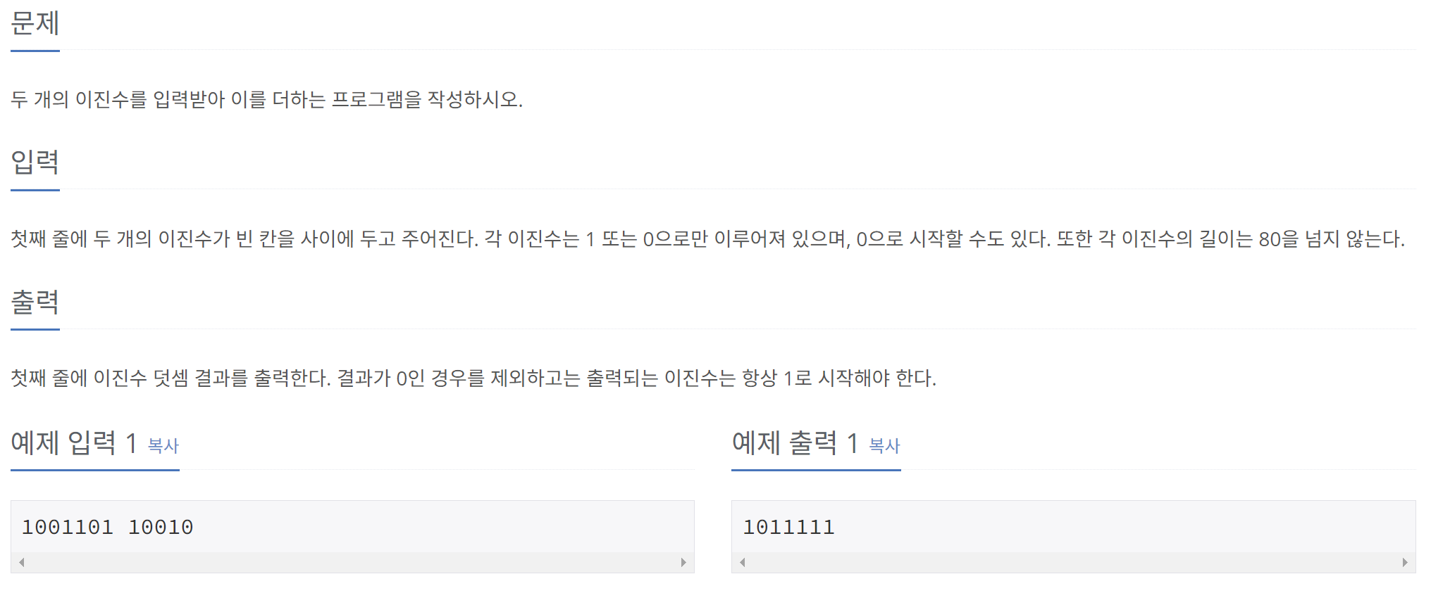 [Java] 백준 1252번 문제 (이진수 덧셈)자료구조 & 알고리즘/BOJ2023. 10. 3. 15:57