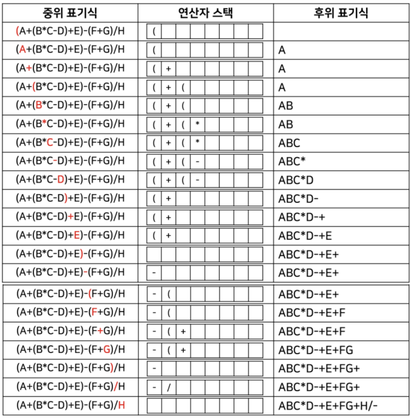 이때 스택을 사용하여 연산자들을 임시로 저장한다.