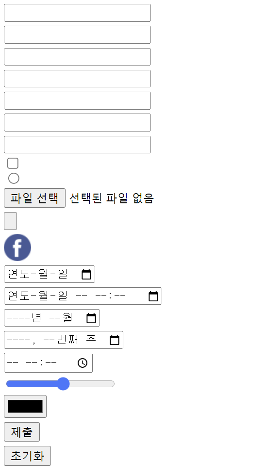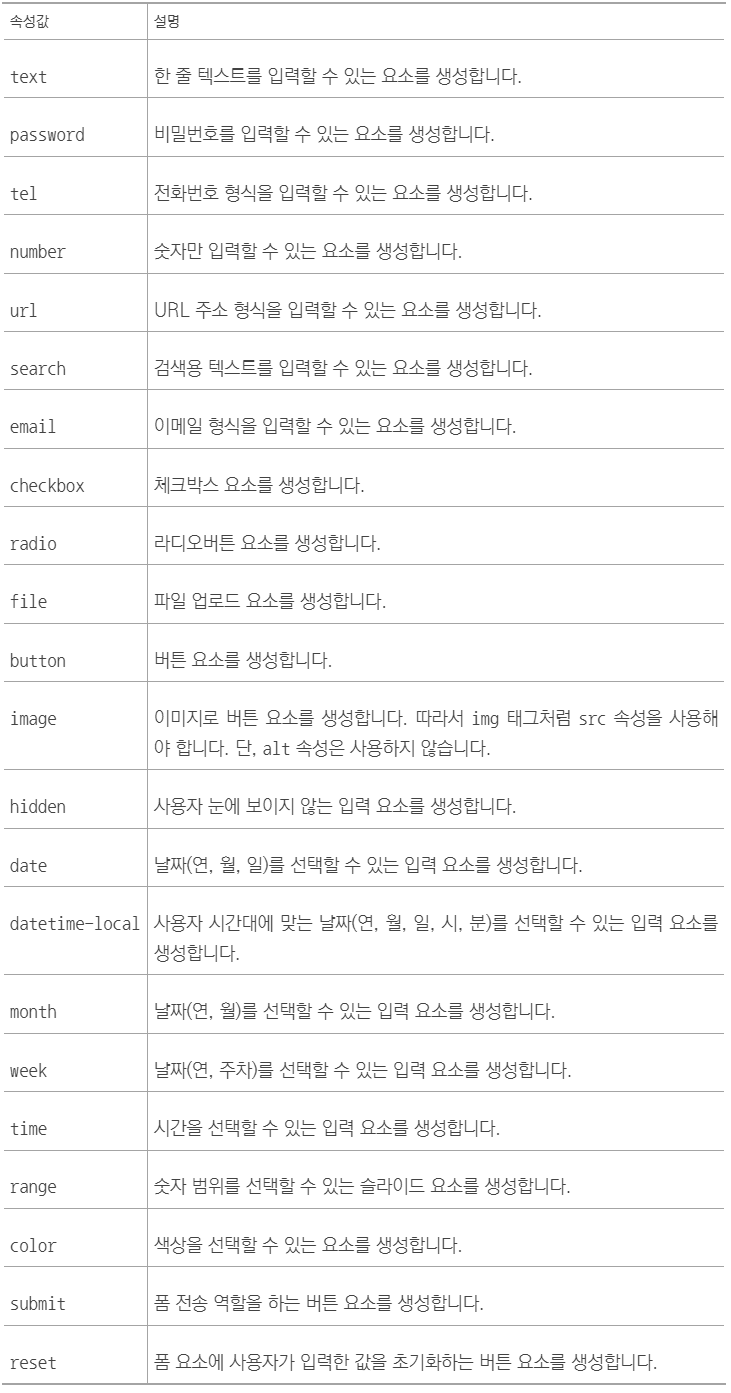 입력 요소의 이름은 폼 요소의 성격에 따라 다를 수 있어서 type 속성값만 명시한다.