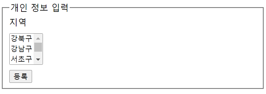 fieldset 태그로 그룹을 지으면 그룹별로 박스 모양의 테두리가 생긴다.