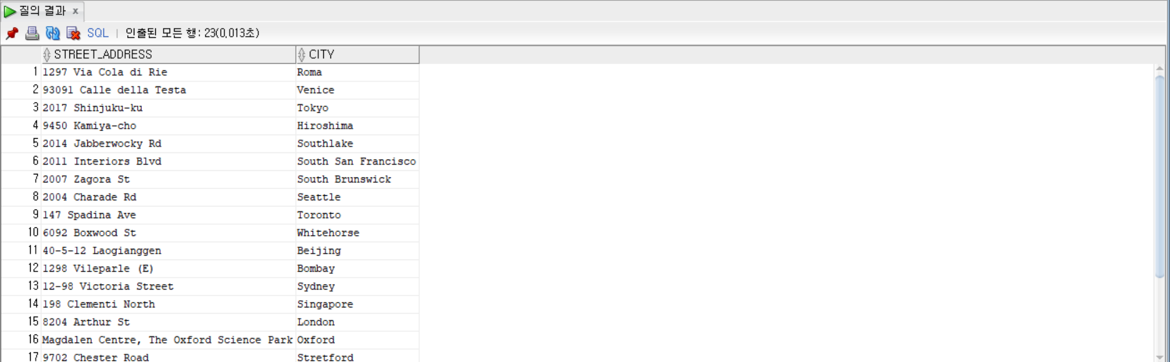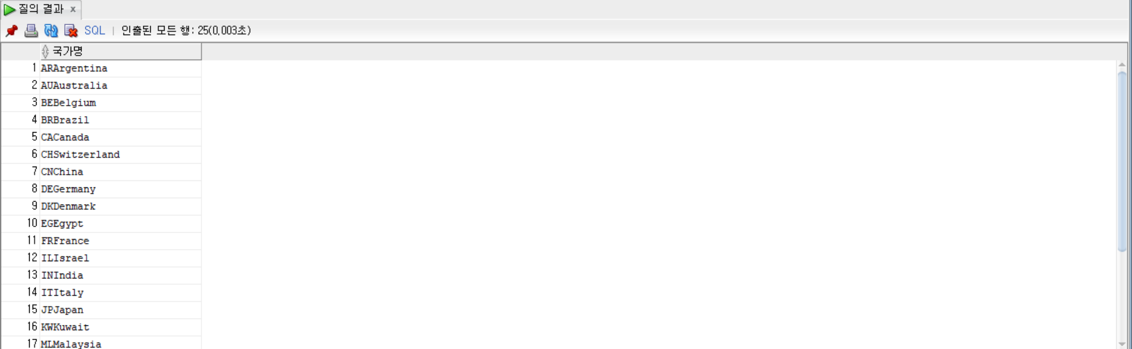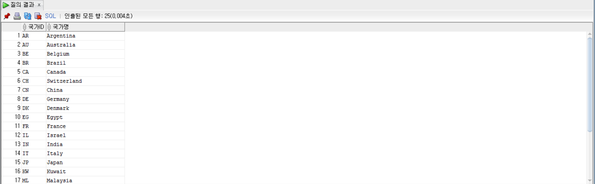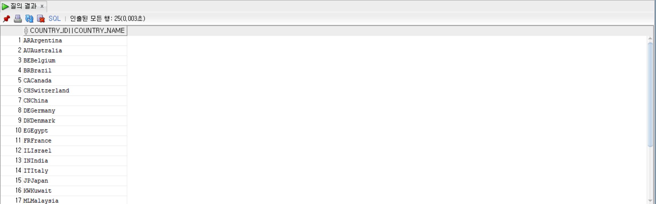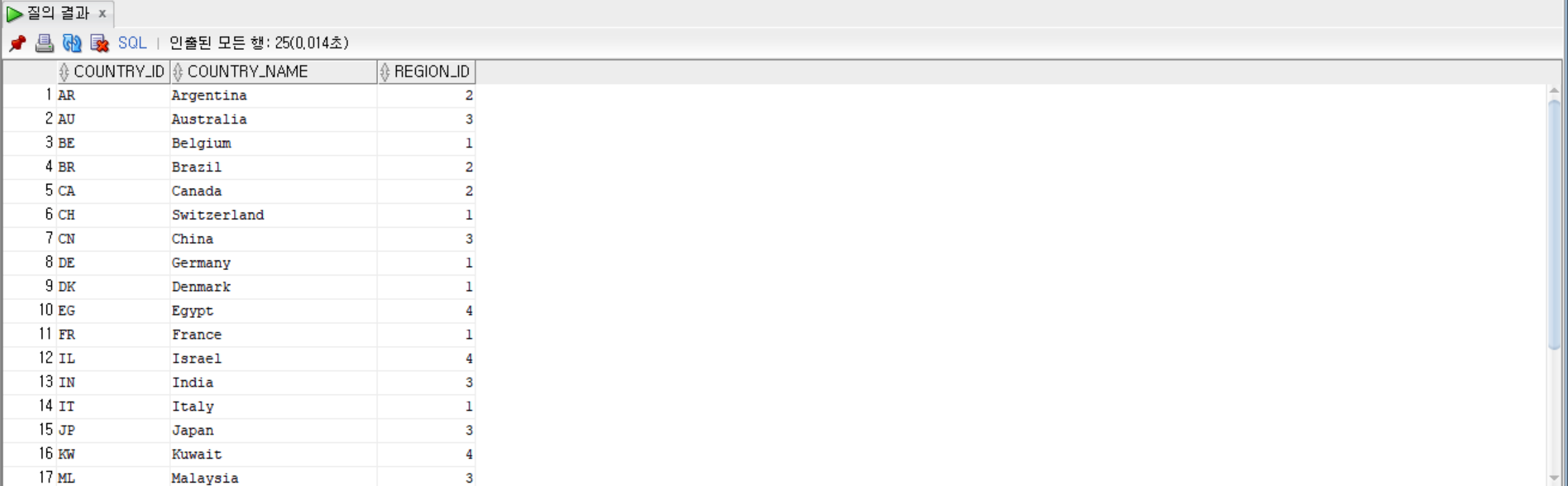 SELECT * FROM countries; --countries 테이블 조회