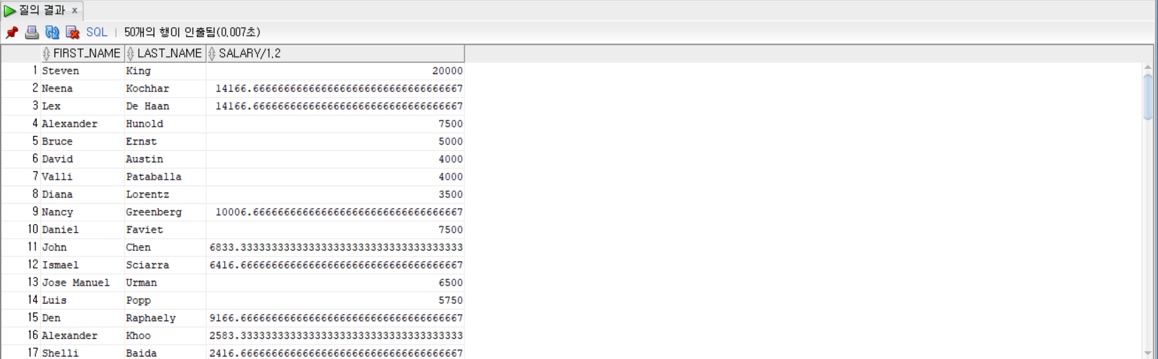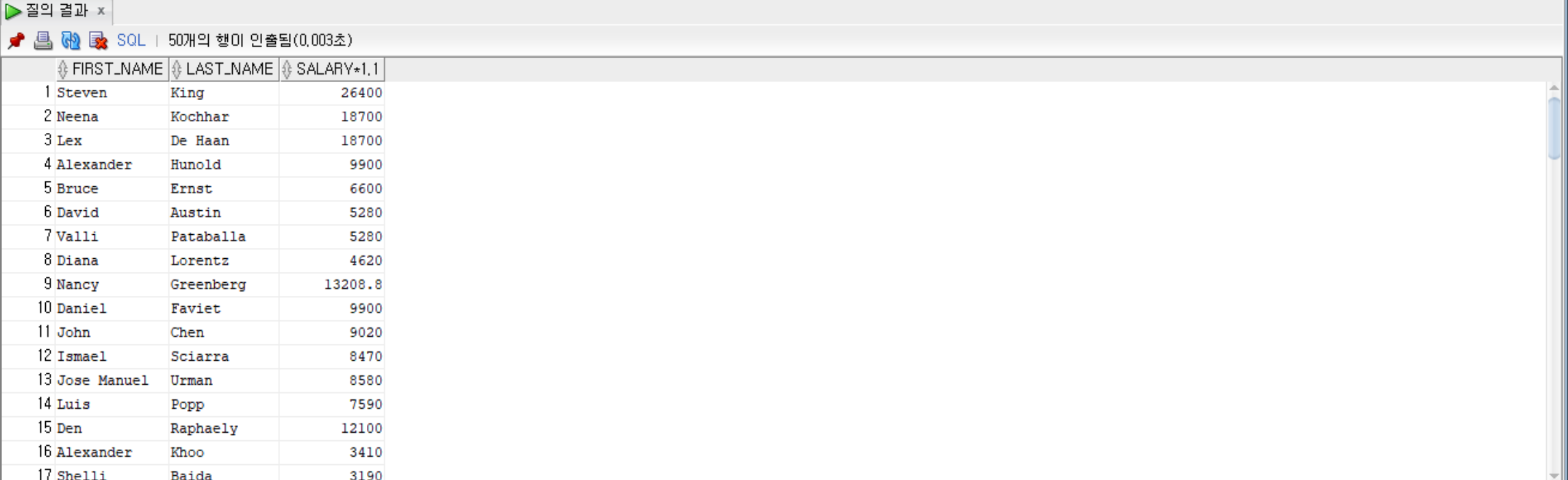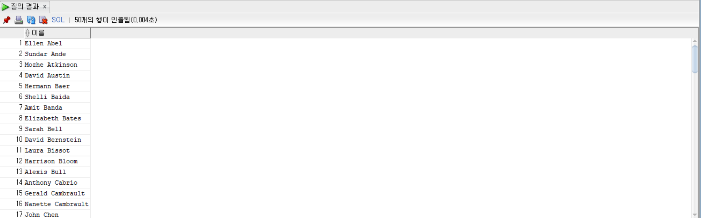 SELECT first_name ||' '|| last_name AS 이름 FROM employees;