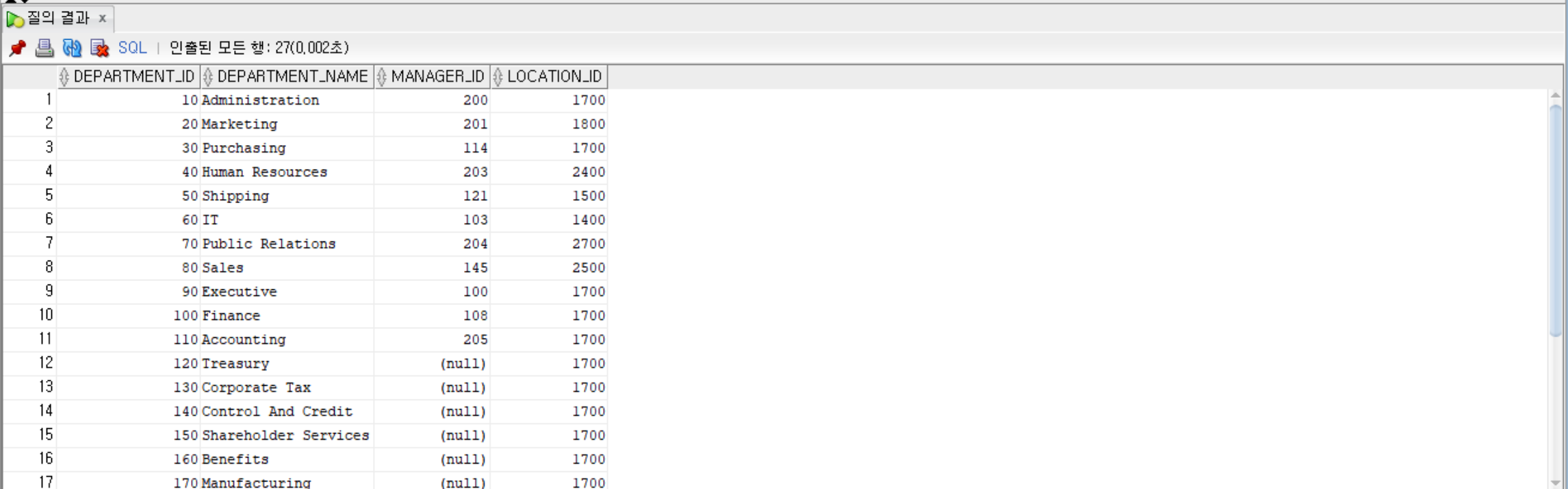 SELECT department_id, department_name from departments; -- 해당 행만 출력