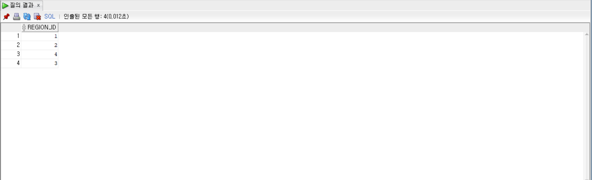 SELECT DISTINCT region_id FROM countries; --중복 제거