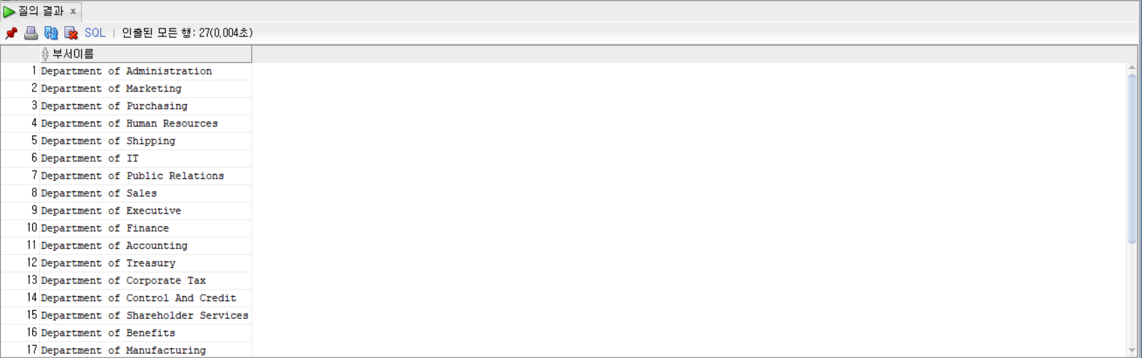 SELECT 'department of ' || department_name AS 부서이름 from departments; --연결연산자 + 별칭