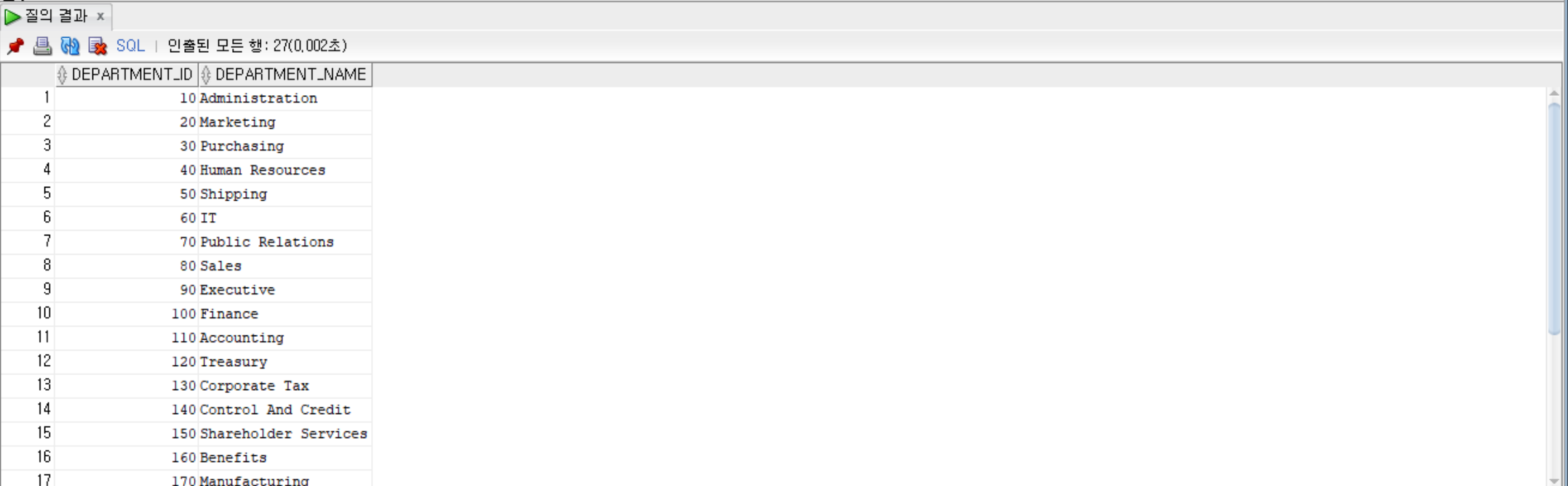 SELECT department_id, department_name from departments; -- 해당 행만 출력