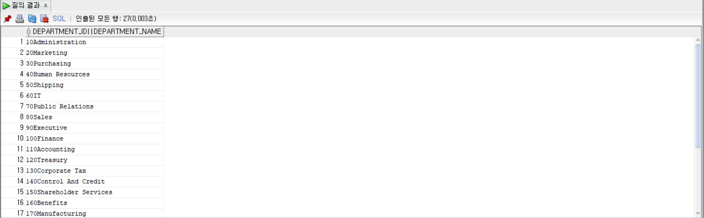 SELECT department_id || department_name from departments; --해당 컬럼을 결합해서 출력