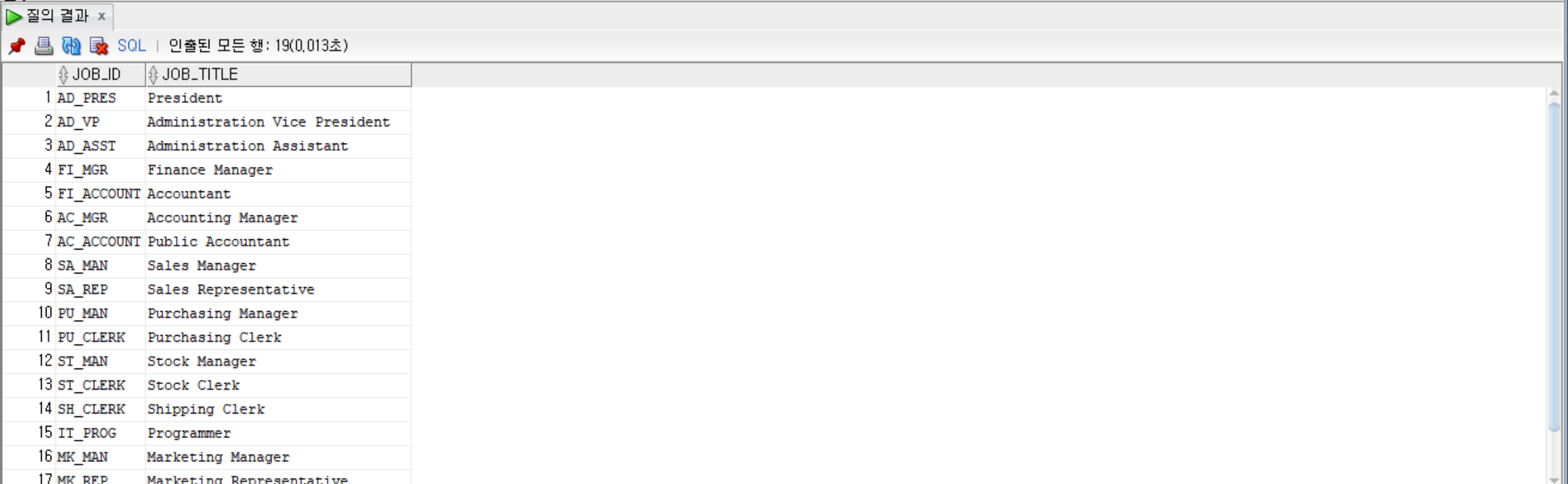 SELECT job_id, job_title FROM jobs; --두 개의 컬럼만 추출