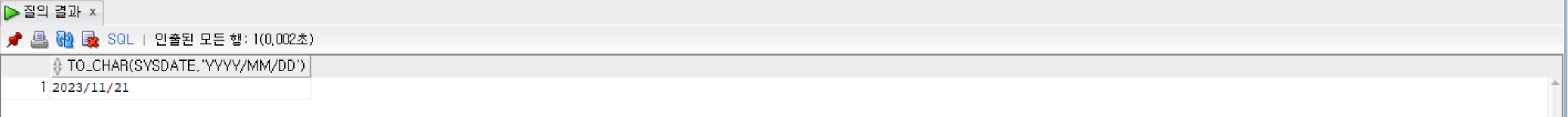 SELECT TO_CHAR(SYSDATE, 'YYYY/MM/DD') FROM dual;