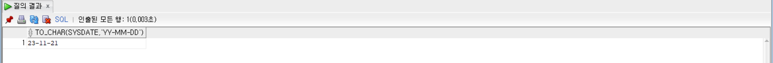 SELECT TO_CHAR(SYSDATE, 'MM"월" DD"일"') FROM dual;