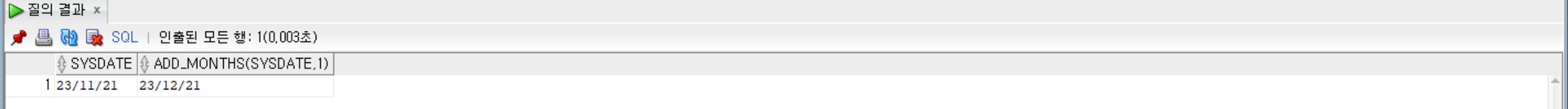 SELECT SYSDATE, ADD_MONTHS(SYSDATE, 1) FROM dual;