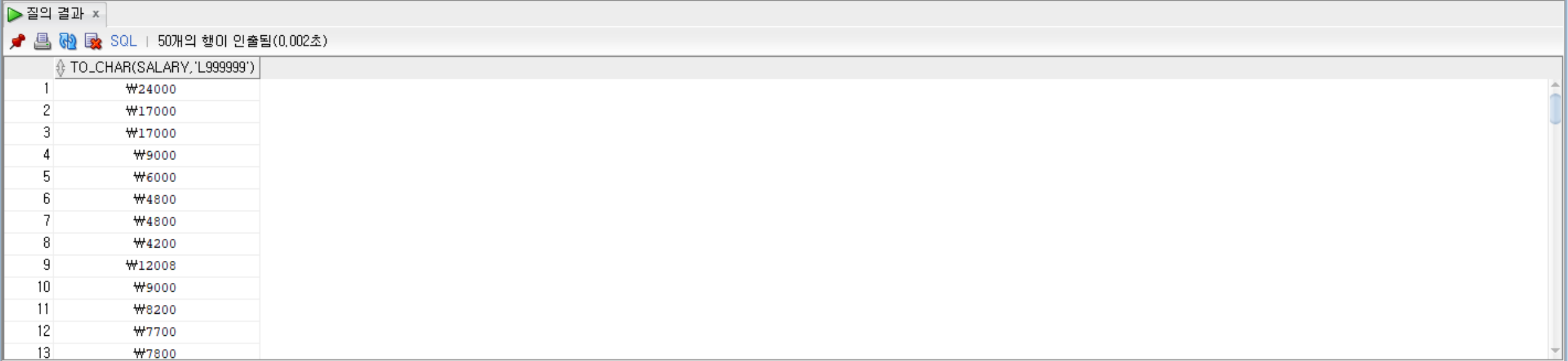 SELECT TO_CHAR(salary, 'L999999') FROM employees;