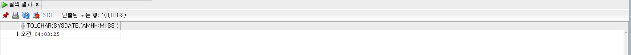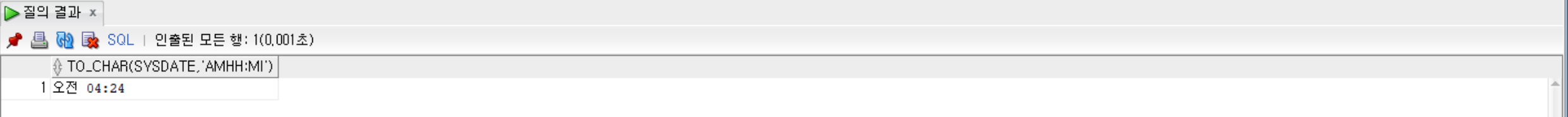 -- 현재 시간의 오전 또는 오후 그리고 시:분을 조회'